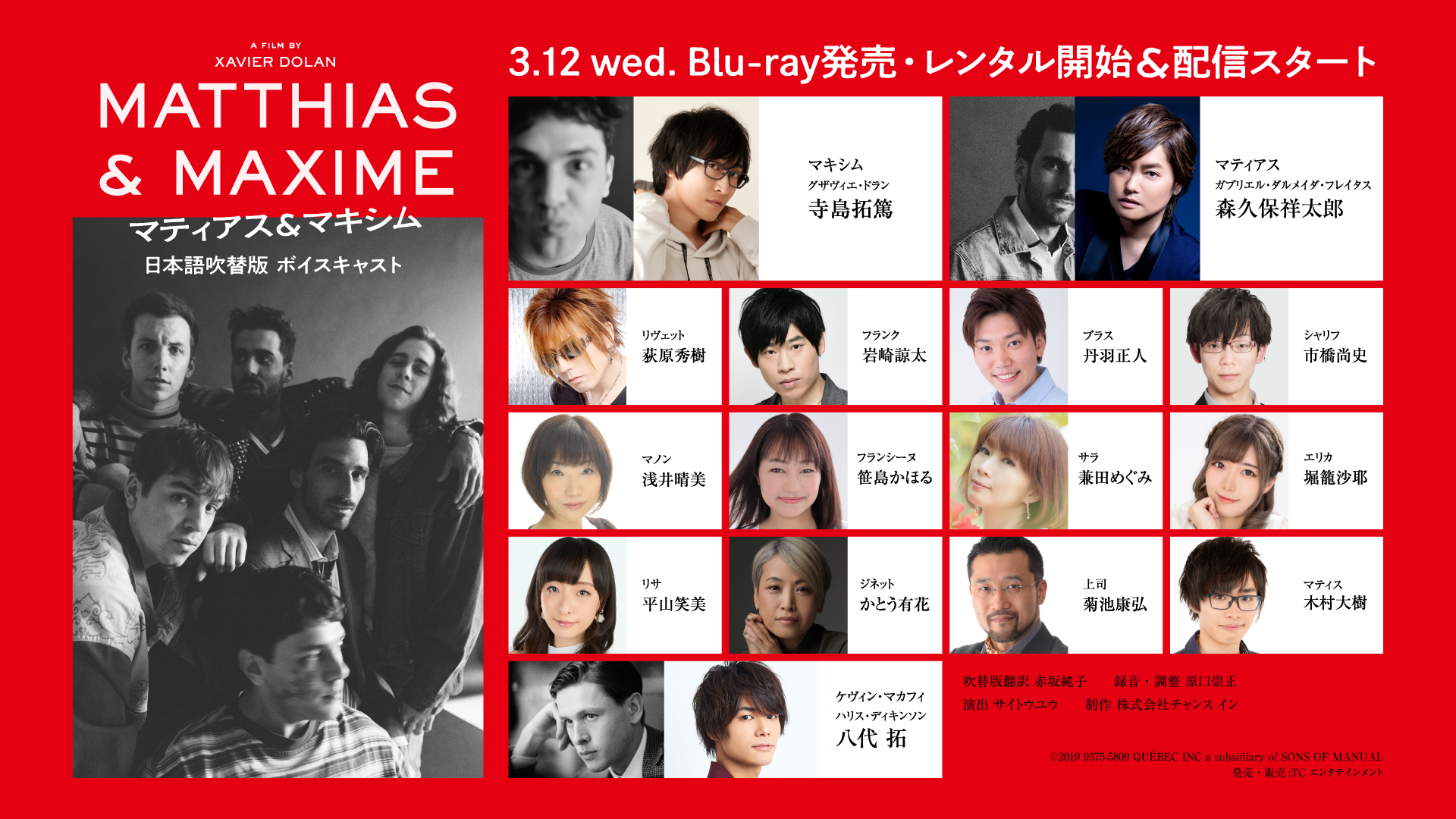 映画「マティアス&マキシム」公式さんから、日本語吹き替え版キャストが発表されました。